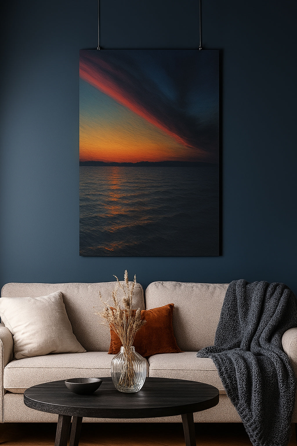 Atmospheric Nordic wall art inspired by Scandinavian twilight and still waters. Canvas...